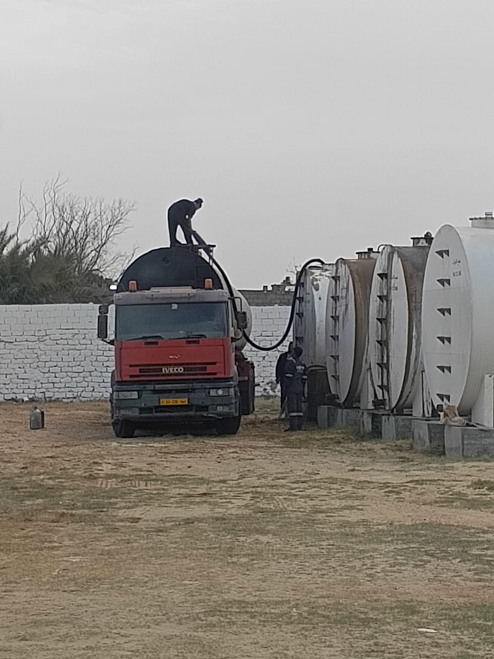 These sites are used as collection and primary sorting points, where equipped vehicles carry out suction and transport operations according to strict technical and environmental procedures, before sending the oils and petroleum materials to the company's main plant located in the Industrial Zone – Sidi Al-Saih, where final processing and recycling operations are conducted according to approved standards.